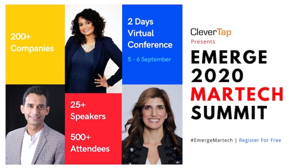 Clavent, an India based global conferences company, is hosting Emerge Martech Summit powered by Clevertap, a Marketing and Advertising Technology Conference on 5th & 6th September. Emerge Martech Summit 2020 will bring together marketers & business leaders looking to take their business to the next level. It will cover the latest factors that are set to transform the future of marketing, technology, and data functions.