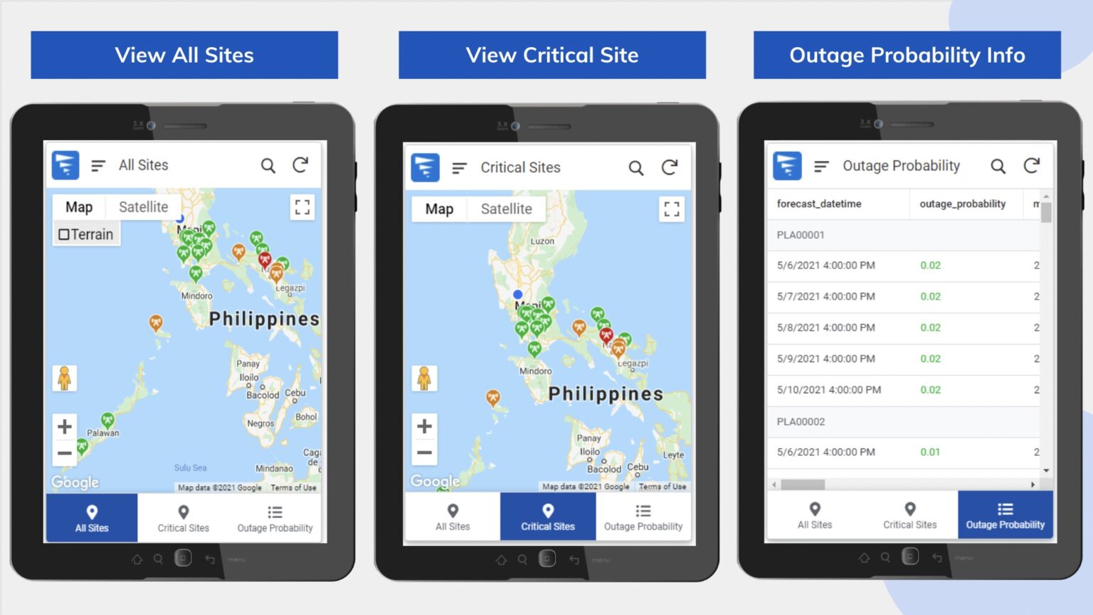 Globe engineers will use G-Climate instead of compiling multiple types of information to get weather forecasts and daily updates. Engineers assigned to a particular area receive email notifications on outage predictions for the cell sites within their area, allowing them to take precautionary measures. G-Climate’s machine learning automatically analyzes multiple sources of information throughout the day including historic cell site information and updated weather information.